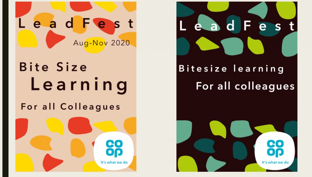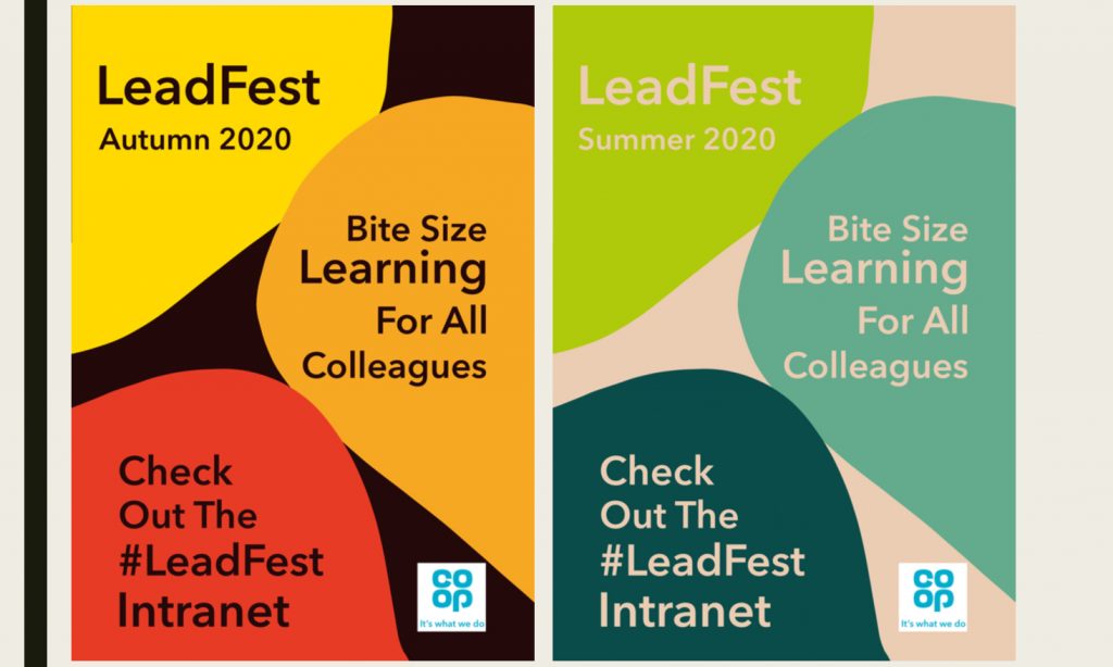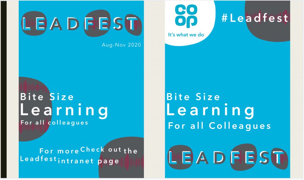 My Second lot of work experience is where I became a mentee within the Learning Design Studio at The Co-op. I worked along side a graphic design who was my mentor and helped me develop my studio skills. The first project I worked on was LeadFest which is a learning based festival about leadership, communication etc. The brief was to create a logo and poster for the festival.